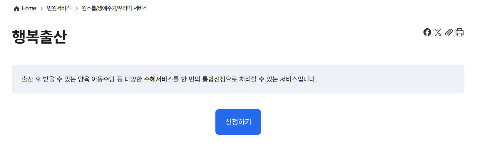 - 정부24 홈페이지나 앱 → '행복출산 원스톱 서비스' 이용